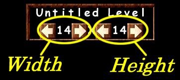 These are the size controls. The current size is shown as 14 (width) x 14 (height). The two arrows are used to control the width and height of the level respectively.