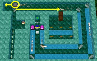 and push the steel box (yellow) into the corner, then the reflector below it to the