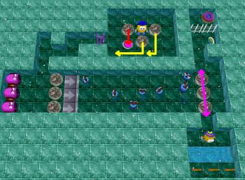 Next, move all three boulders from left to right (but do not step on the conveyor belt yet!).