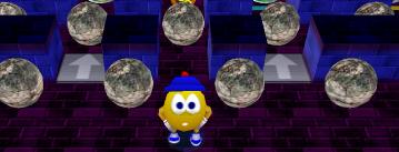 To evade the Ghosts, wait until a column has passed, then use a box to build to cross the stream and step on and off of the bridge to make it collapse, trapping the Ghosts behind more water. During your approach to the exit, keep push each boulder and immediately step sideways, as it will roll right back toward you. Get the final boulder onto one of the buttons, and exit.