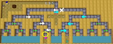 Position Stinky, the box, and Loof, at the "S", "B", and "L" respectively. Let Stinky walk onto the conveyor belt, and immediately switch to Loof and place to box on the conveyor belt button. Switch back to Stinky and collect as many Bonus Coins as you want - you must however collect the one in the yellow circle.